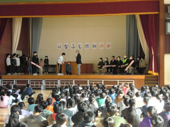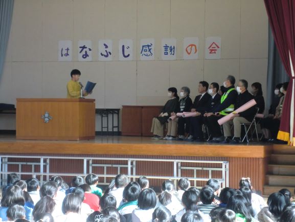 本校は、日頃より出羽地区の人的・環境的・伝統的な強みを活かした教育活動を展開しています。このことは、たいへんありがたいことです。本日は、以下の地域の皆様よりご来校いただき、「はなふじ感謝の会」を開催しました。