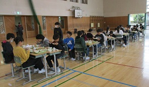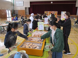 みんな、自分オリジナルの給食メニューを笑顔で食べていました。