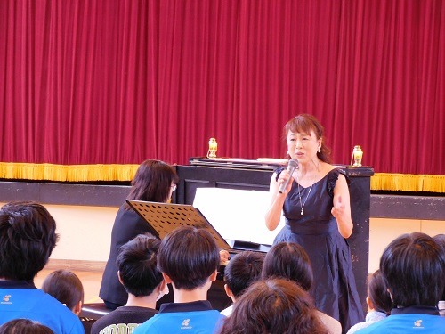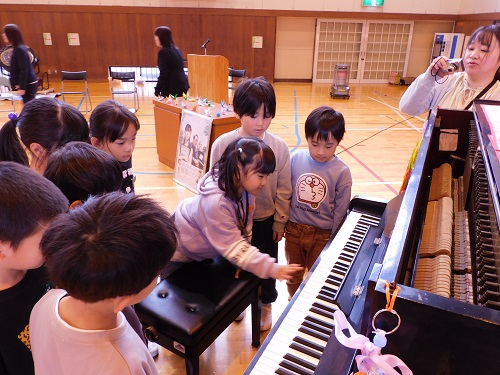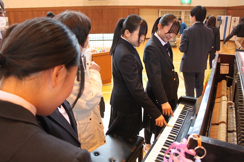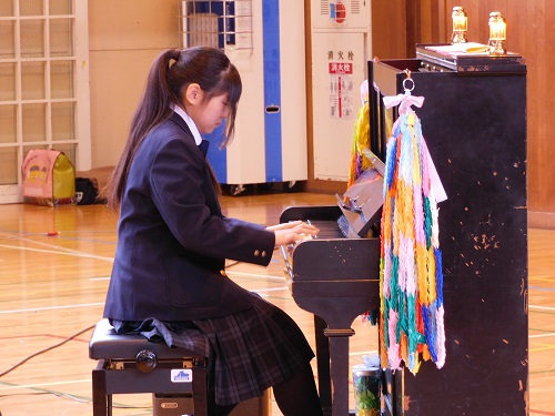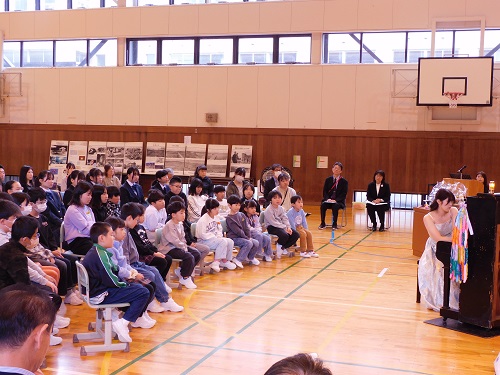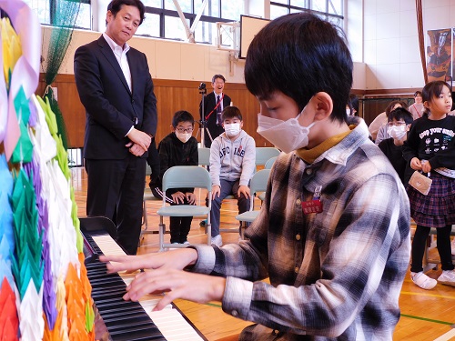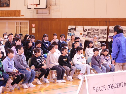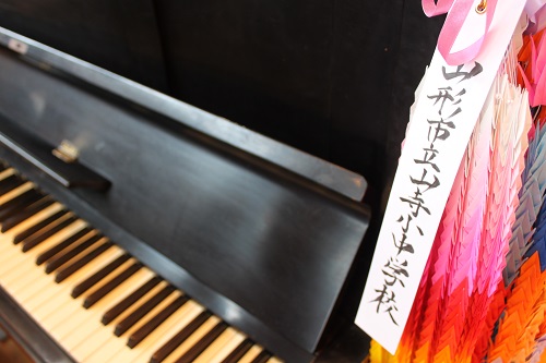 被爆ピアノ所有者で調律師の矢川光則様、被爆ピアノ平和コンサート in 山形実行委員会代表の菅野徳明様をお迎えし、山寺小中学校にて「被爆ピアノ平和コンサート」を開催しました。