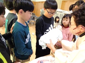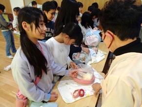 受精卵の大きさを実感したり、胎児の出産の様子を知ったり、実物大(実際の重さ)の赤ちゃん模型をだっこしたりし、生命誕生のしくみやすばらしさを実感することができました。