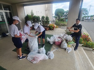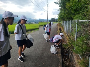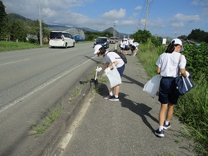 8月19日、20日、22日に生徒会が呼びかけて、有志による学区内の道路のごみ拾いを行いました。休み中の暑い中でしたが、熱中症対策を行い実施することができました。思ったよりごみは少なかったようです。途中クーリングダウンの場所として、本沢コミセンもお借りしました。ありがとうございます。