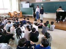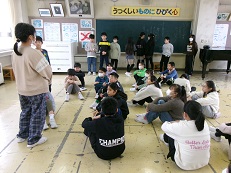 2年生は、4名の子どもたちが企画した「学年ハンカチ落とし遊び」です。もうすぐ新年度になり、クラス替えしてもなかよくスタートできるように、クラスを越えて仲良しになろうというねらいです。