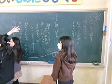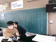 途中で意見が途絶えるとすぐに、近くの人と話し合って意見を出し合う方法がとられ、授業での学び方が活かされていました。