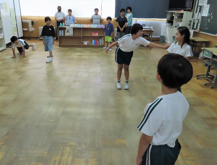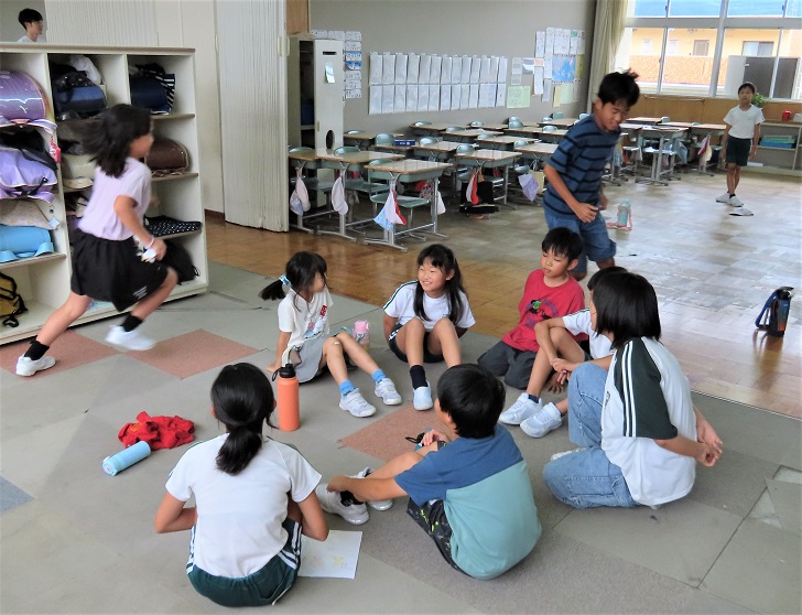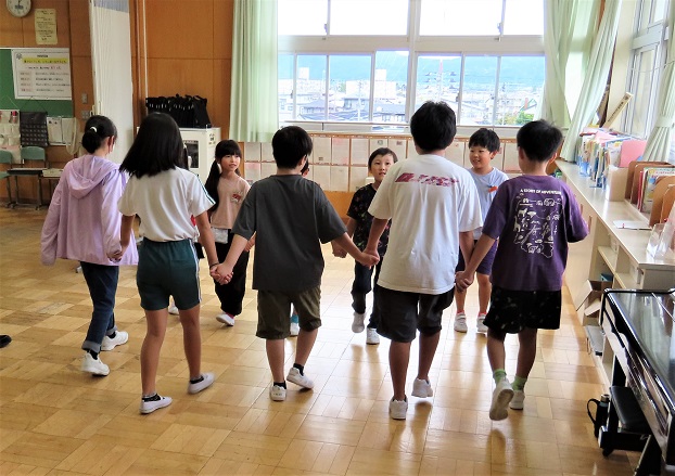 「だるまさんが転んだ」「花いちもんめ」「ハンカチ落とし」など、学年に関係なくできる遊びを、6年生が中心になって考えてきてくれました。高学年はちょっと手を抜いてくれたり、意識的に下学年に声をかけてあげたりなどしている様子も見られ、温かい時間になりました。また少し、なかよくなったような気がします。