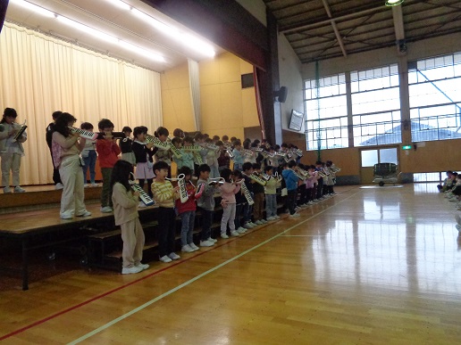 入学してから授業で音階の学習をしてきましたが、「きらきらぼし」はその成果が発揮されました。みんなでリズムを合わせることが課題でしたが、今までで一番の演奏でした!