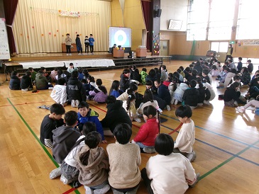 今年度のスローガンは「届けこの思い!今までの感謝を形に 〜輝く みらい学年へ〜」でした。インフルエンザ流行のため、思うようにたてわり班で集まることができず、5年生が困っていましたが、それでも工夫しながら本番を迎えることができました。