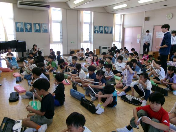 本日、山形教育用品株式会社のご厚意により、すまいる学年(第1学年)児童が、外部専門講師をお招きし、鍵盤ハーモニカの音の出し方について学習しました。講習会では、講師の方の模範や説明により、息の吹き方や指の動かし方等、細部に渡り教えていただきました。試して納得を得る学びができた子どもたちは、大満足のうちに講習会を終えました。本日の講習会をきっかけに、子どもたちは鍵盤ハーモニカに触れる機会が増えることを期待しています。