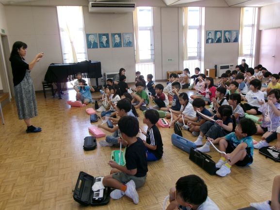 すまいる学年(第1学年)において、外部専門講師招聘による鍵盤ハーモニカ講習会を実施しました。