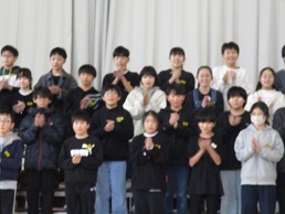 1〜5年生は、お世話になった6年生に手紙のプレゼント・エールで感謝の気持ちを伝え、6年生からは、メッセージとボディパーカッションのお返しをいただきました。