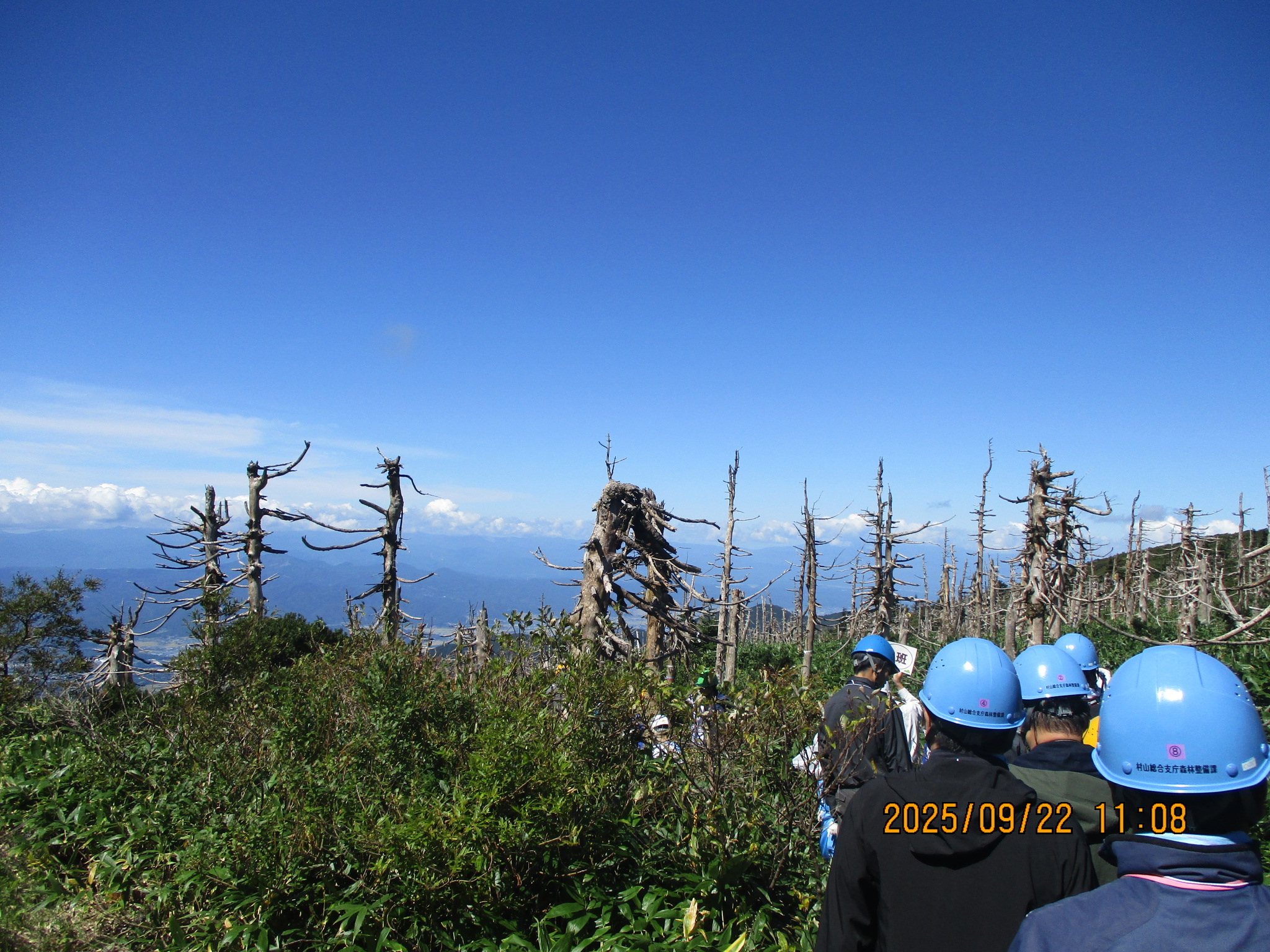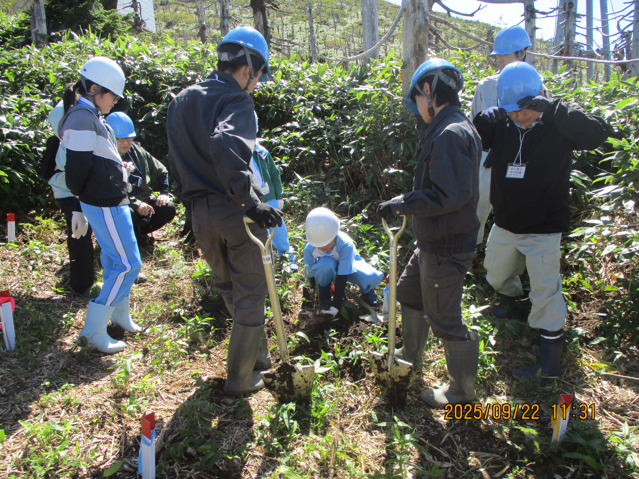 オオシラビソの稚樹移植を今年は山寺小中学校と合同で行いました。蔵王でしか見ることのできない青空と山々の稜線を眺めながら、樹氷復活の思いを込めて作業を行いました。