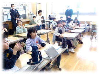 実際に自分たちの住んでいる学区内の写真を見ながら、危ない場面を考えました。生垣や高い塀があり見通しの悪い狭い道では、カーブミラーや標識があり注意を促していることを知り、「○○が来るかもしれない」「○○なるかもしれない」と予測し、考え、行動できることが大切だということを学びました。