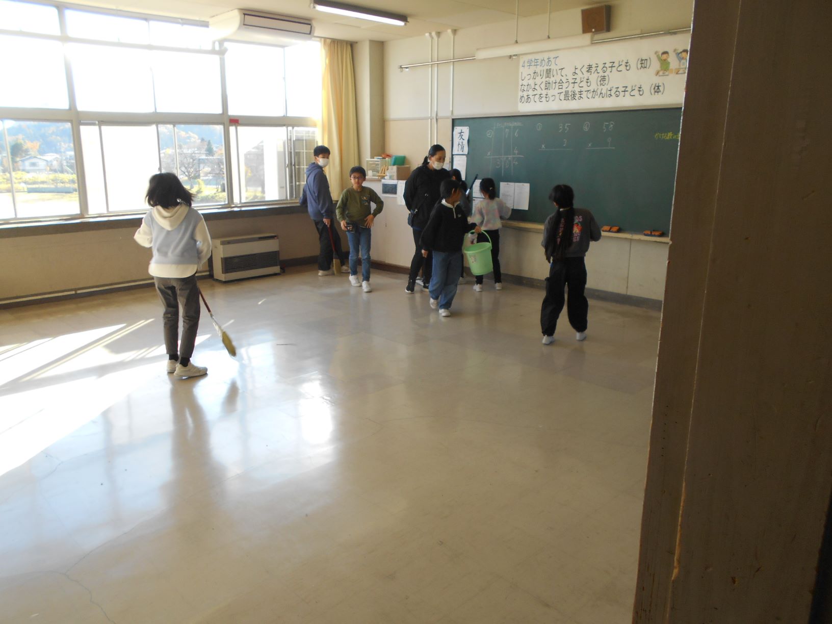 人数は少なくても、子ども達は教室をきれいに掃いて、床の汚れ落としをして、その後、教職員でワックスをかけました。