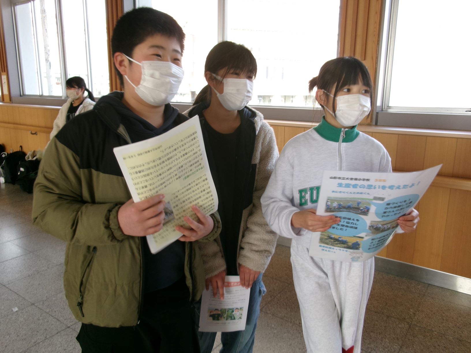 1/15(木)、5年生が社会科見学に出かけました。食料品工業の施設見学として「城西牛乳」へ、そして情報産業の施設見学として「山形テレビ」へ行きました。そのほかに、これまで農業体験や生産者さんの思いを聞く学習を通してまとめたチラシを、山形駅の自由通路において、通行する人に簡単な説明をして渡す活動を行いました。これまでの学習の成果を、見知らぬ方を呼び止めていわばミニプレゼンをするわけです。このようにアウトプット(学習した知識や経験、考えなどを「話す」「書く」「発信する」「行動する」といった形で外部に表現・出力すること)することは知識の定着やスキル向上に不可欠とされます。そのため、今回の社会科見学は見学するだけでなく学習発表ができた意義ある社会科見学となりました。
