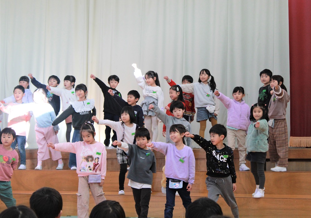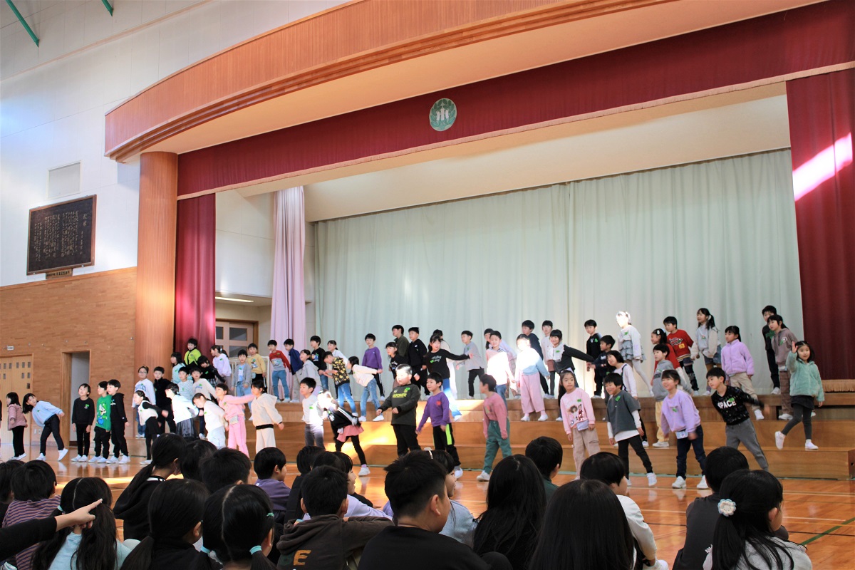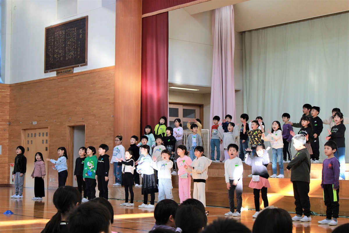 1年生は、国語や音楽、体育で学習したことを組み合わせて発表しました。大きな声、大きな動きで、楽しそうに表現していました。子ども達はみんな満足そうでした。