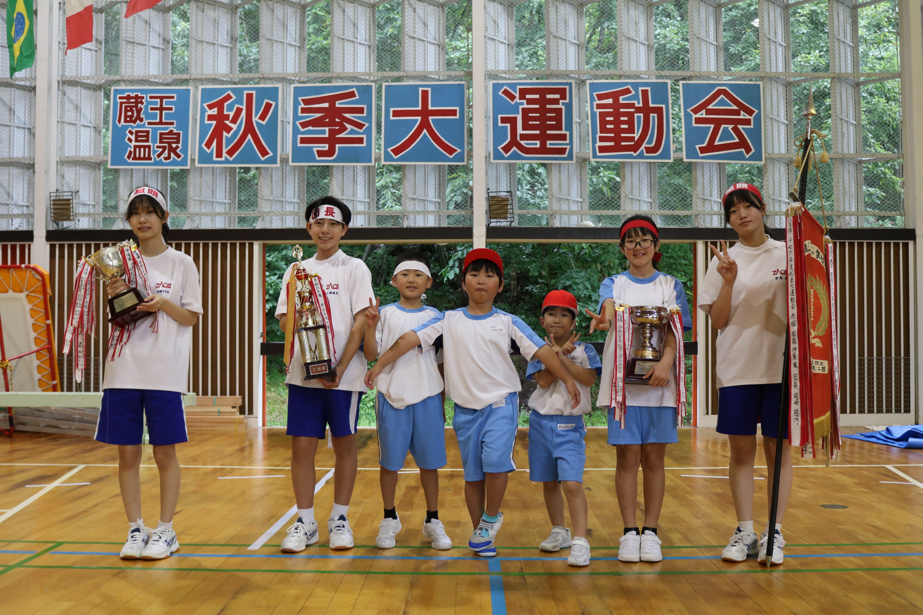 スローガン「瞬〜蔵王とともに駆け抜ける〜」のもと、今年度の運動会を実施しました。雨天のため、室内での開催となりましたが、熱い戦いあり、笑顔あり、地域の方々、観光協会の方々、保護者の皆様とともに楽しいひと時を過ごすことができました。
