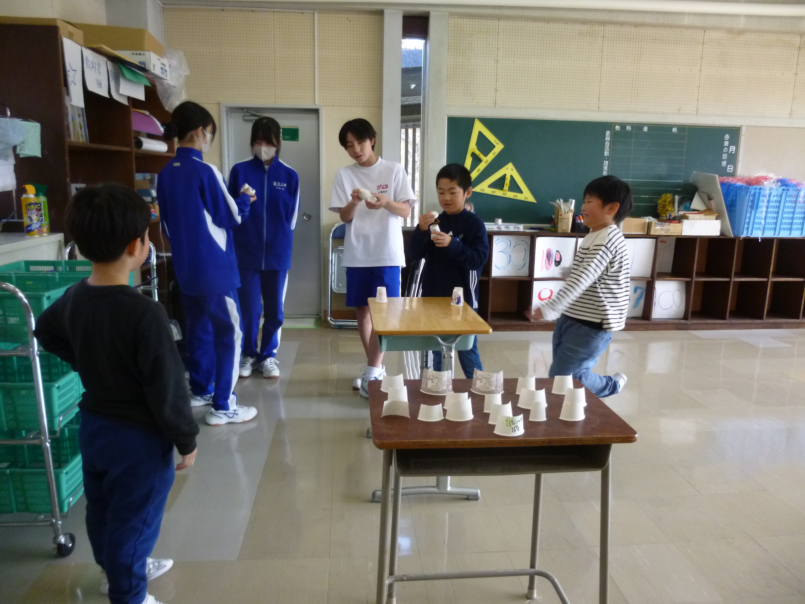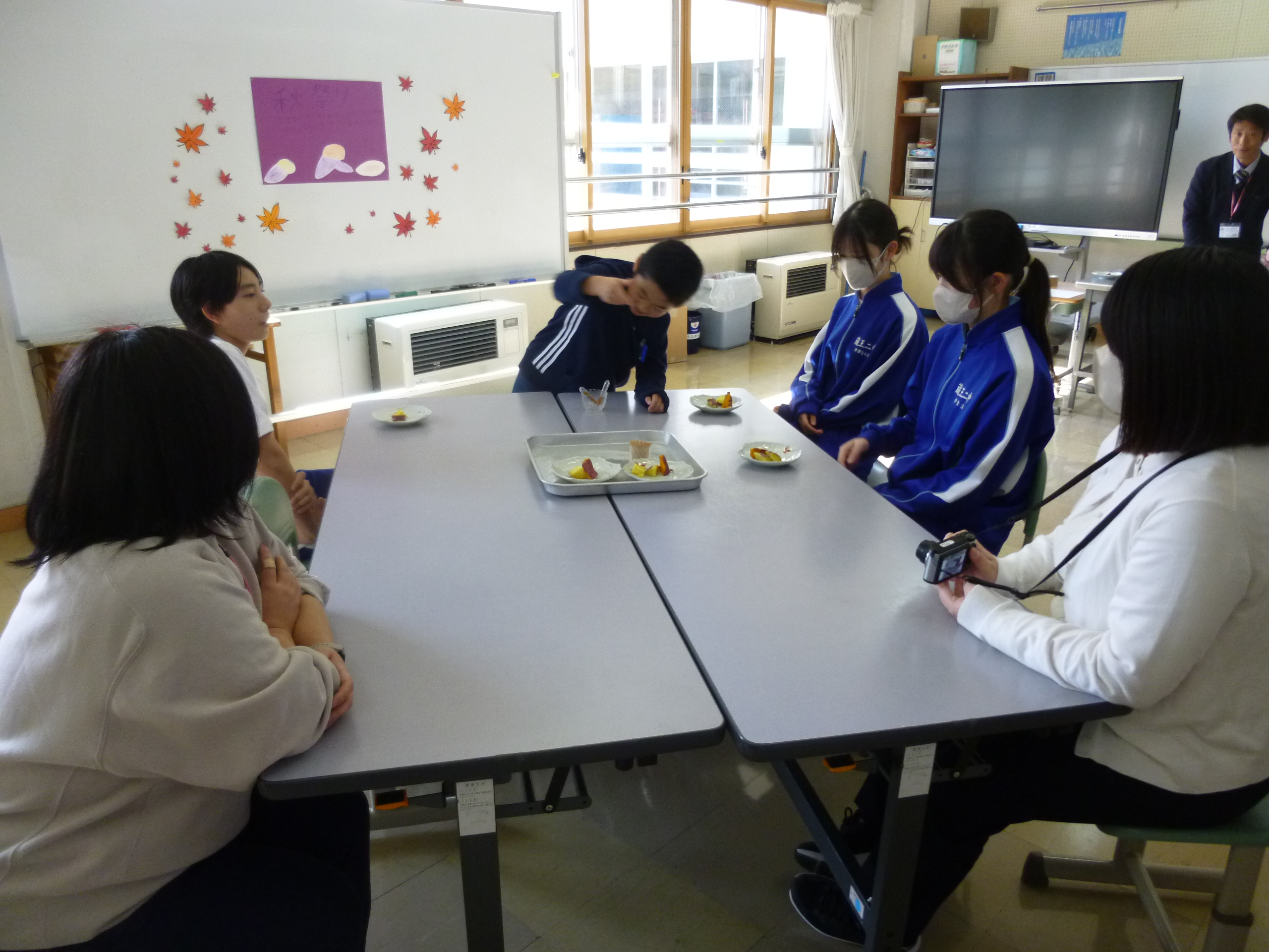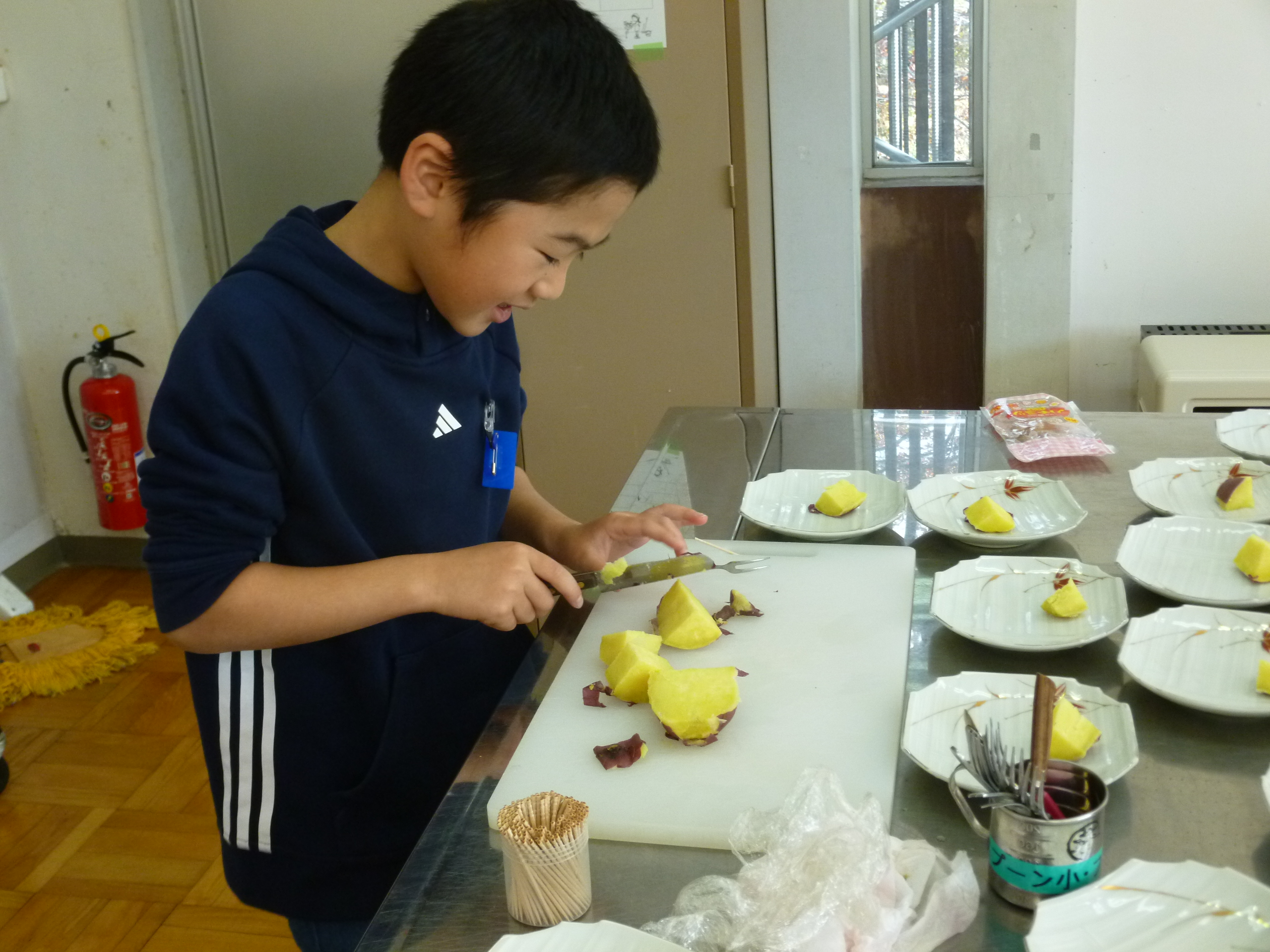 3年生は畑で育てたサツマイモの食べ比べを、1年生は生活科で考えた様々な遊びを企画してくれました。丁寧に盛り付けられたホクホクのサツマイモはとても美味しく、そして、工夫された輪投げやフリスビーなどの遊びがとても楽しく、素敵な時間を過ごすことができました。
