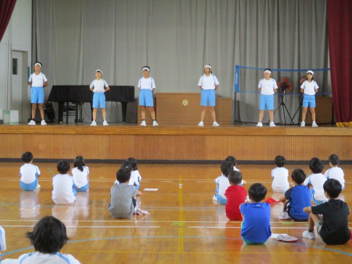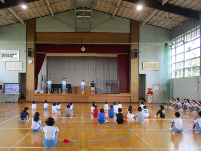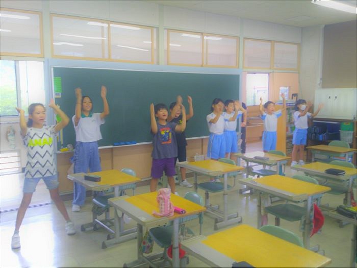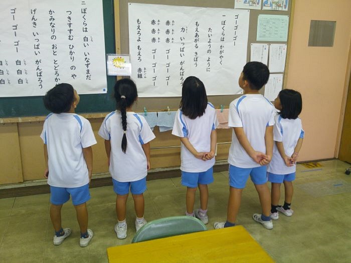 毎日朝の会の時間には、開会式で歌う「ゴーゴーゴー」の歌声が校舎内に響き渡ります。