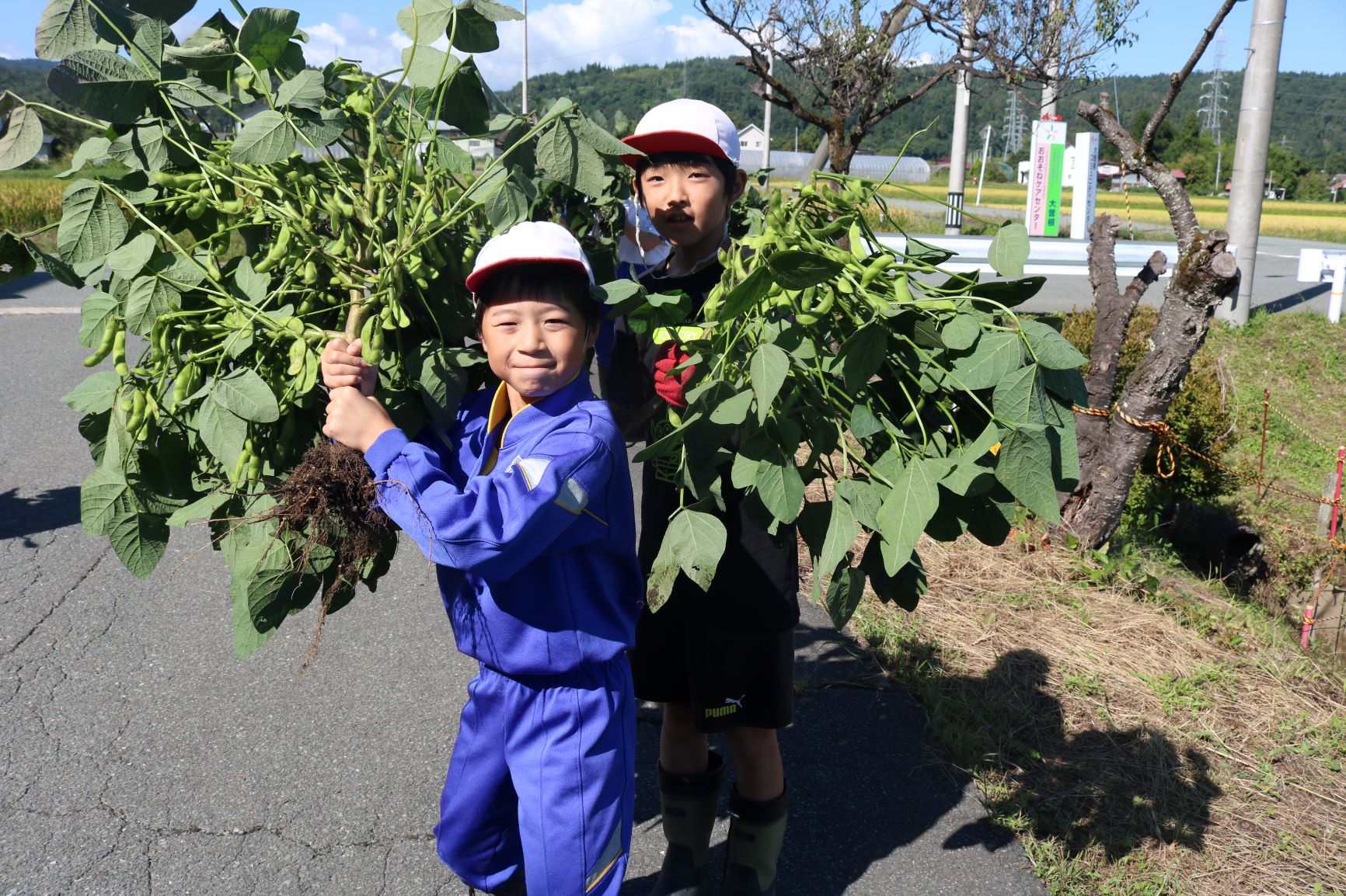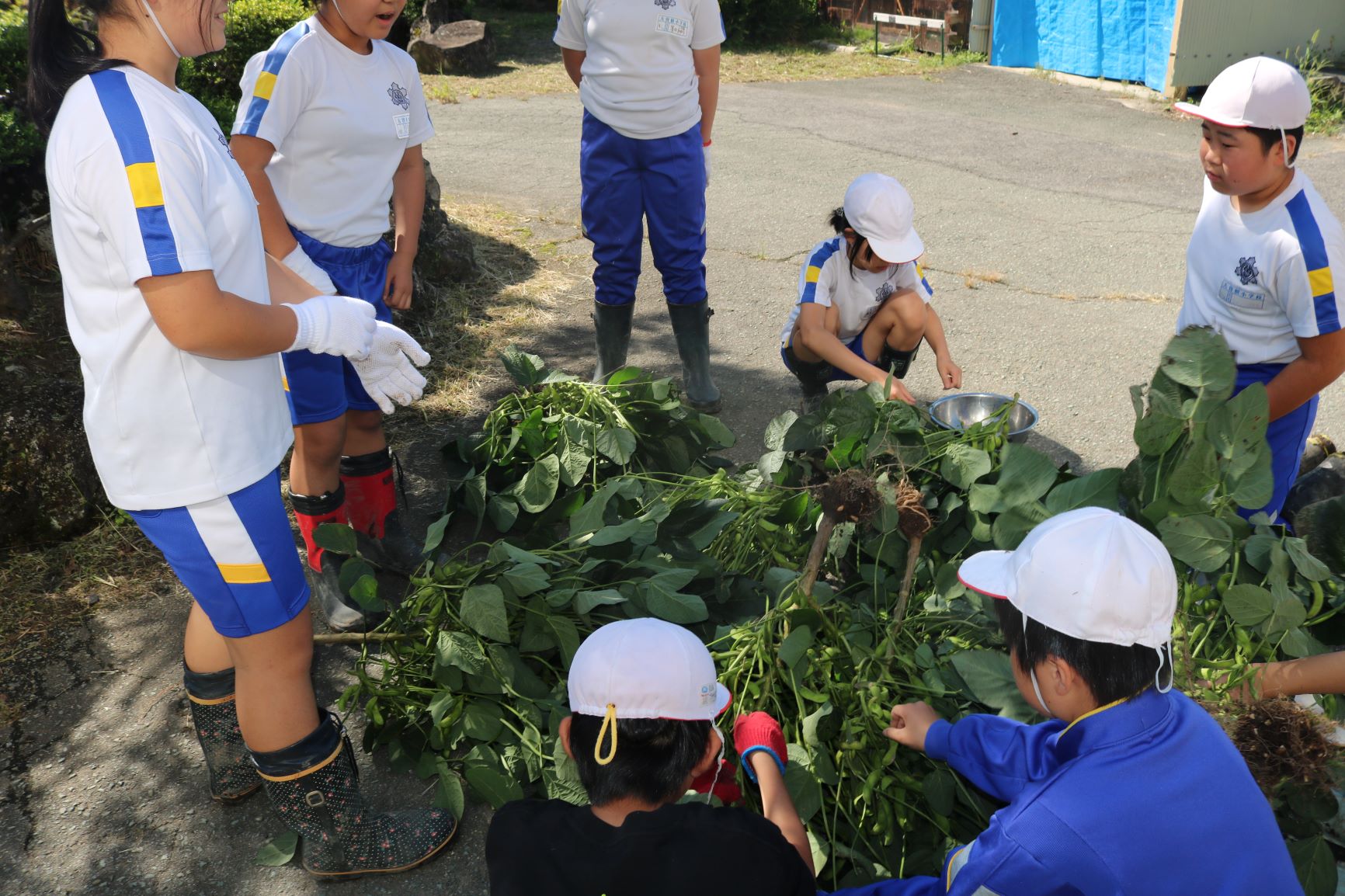 5年生が学年総合で取り組んでいた農作物のひとつで、秘伝豆の収穫をしました。