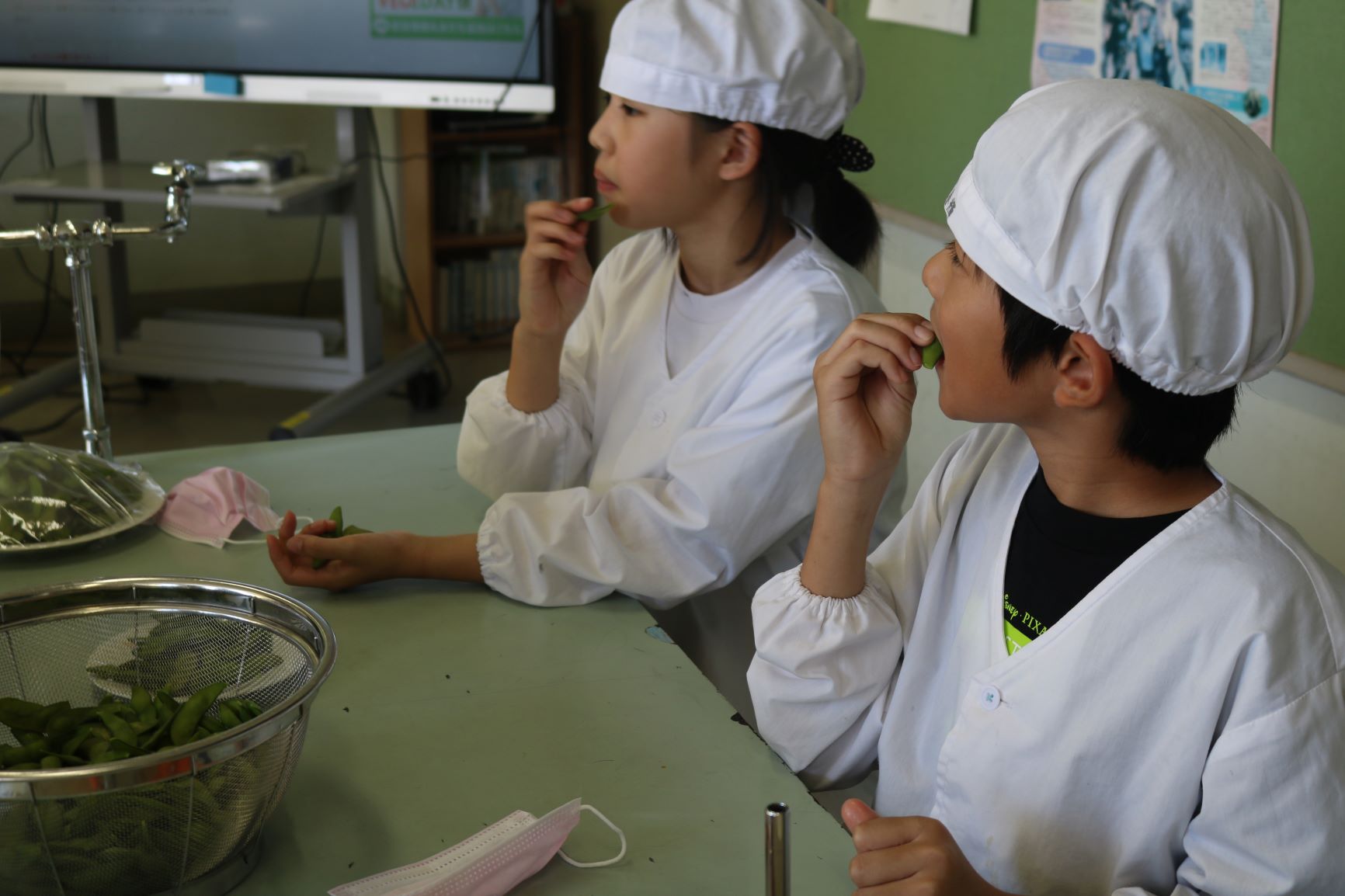 キュウリとオクラは2学期になってからは毎日少しずつ収穫していましたが、秘伝豆は22日を収穫日としてその日に調理して食べる計画をしていたようです。