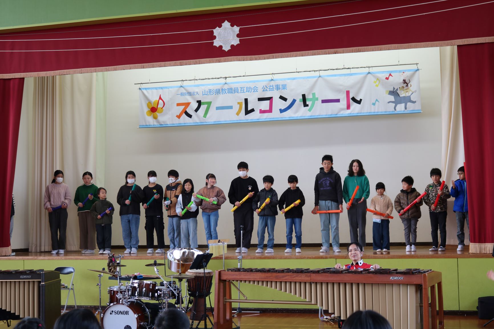19日(水)に山形県教職員互助会公益事業としてスクールコンサート2025を本校体育館で行いました。演奏していただいたのは、パーカッションアンサンブル「パラマリー」のみなさんです。