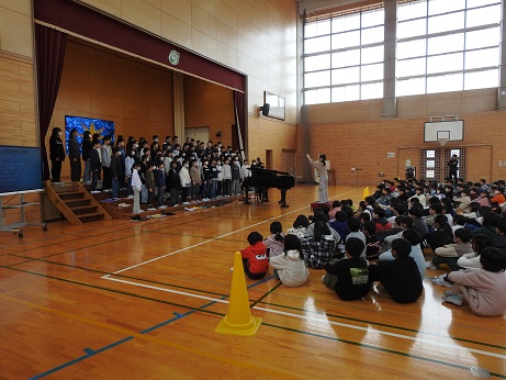 1から5年生からはエールと歌で感謝の気持ちを伝えました。
